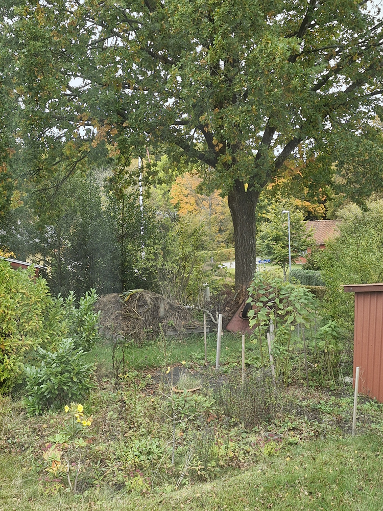 Når man ser ud ad vore vinduer, kunne man let få den tanke, at vi bor midt i naturen, og det er da også den store Nationalpark Fussingø, der danner baggrunden. En stor skiftevis efter årstiderne grøn -gul -rød eller sort mur i horisonten, og landsbyens store træer danner mellemgrunden, og i forgrunden breder vore egne træer deres mægtige kroner.